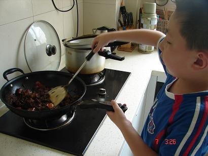 → [贴图]八岁孩子学做梅干菜烧肉