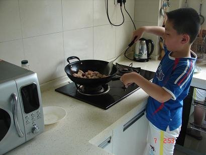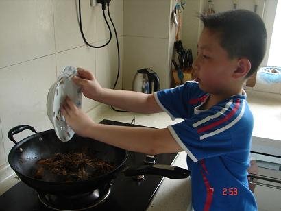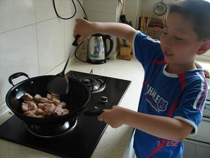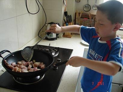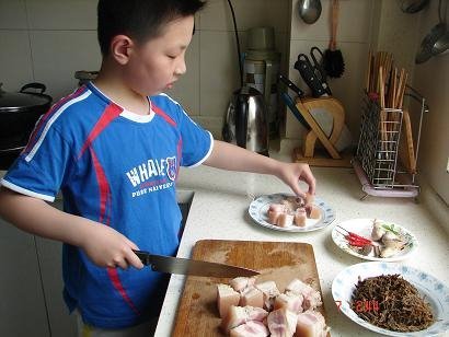 → [贴图]八岁孩子学做梅干菜烧肉