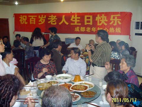 成都老年知心热线志愿者和孤老共度中秋